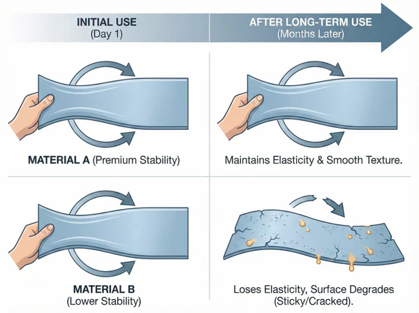 👉 Silicone is chemically stable, not conditionally soft