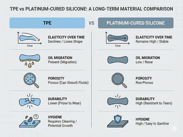 A:Silicone—especially platinum silicone—generally lasts significantly longer than TPE under regular use.